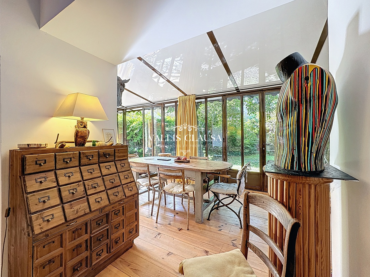 Cette propriété coup de cœur au bord de la Sorgue conjugue authenticité et art de vivre. Édifiée au début du XXème siècle et récemment restaurée avec des matériaux choisis, elle déploie près de 150 m² habitables baignés de lumière. Les planchers en bois et les huisseries élégantes en fer forgé soulignent des volumes généreux, sublimés par un beau séjour de 50 m² avec sa véranda lumineuse face au jardin. La cuisine, conviviale et parfaitement équipée, s’articule autour d’un piano de cuisson et d’un îlot central. Au rez-de-chaussée, une suite de 35 m² offre un confort absolu. À l’étage, trois chambres s’ouvrent par un bel escalier qui s'enroule autour de sa rampe en fer forgé.